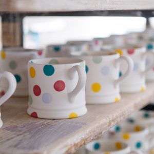水玉模様のマグカップ、星柄のプレート、鳥や花が踊るボウル——イギリスのどんな素敵なキッチンにも、ひとつはある陶器ブランドがあります。エマ・ブリッジウォーター(Emma Bridgewater)です。